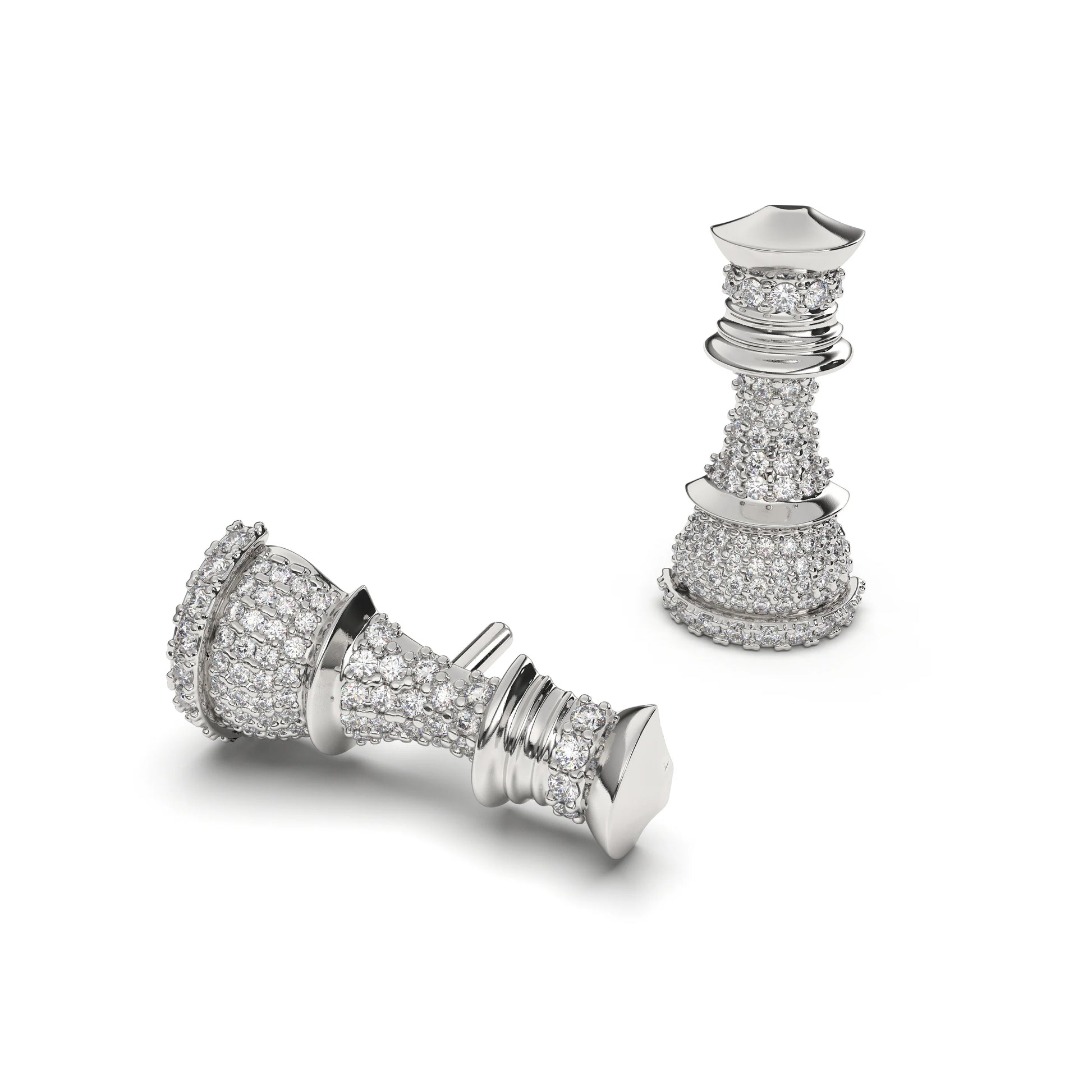 Chess Queen Stud Earrings | White Gold Pavé Diamond Earrings