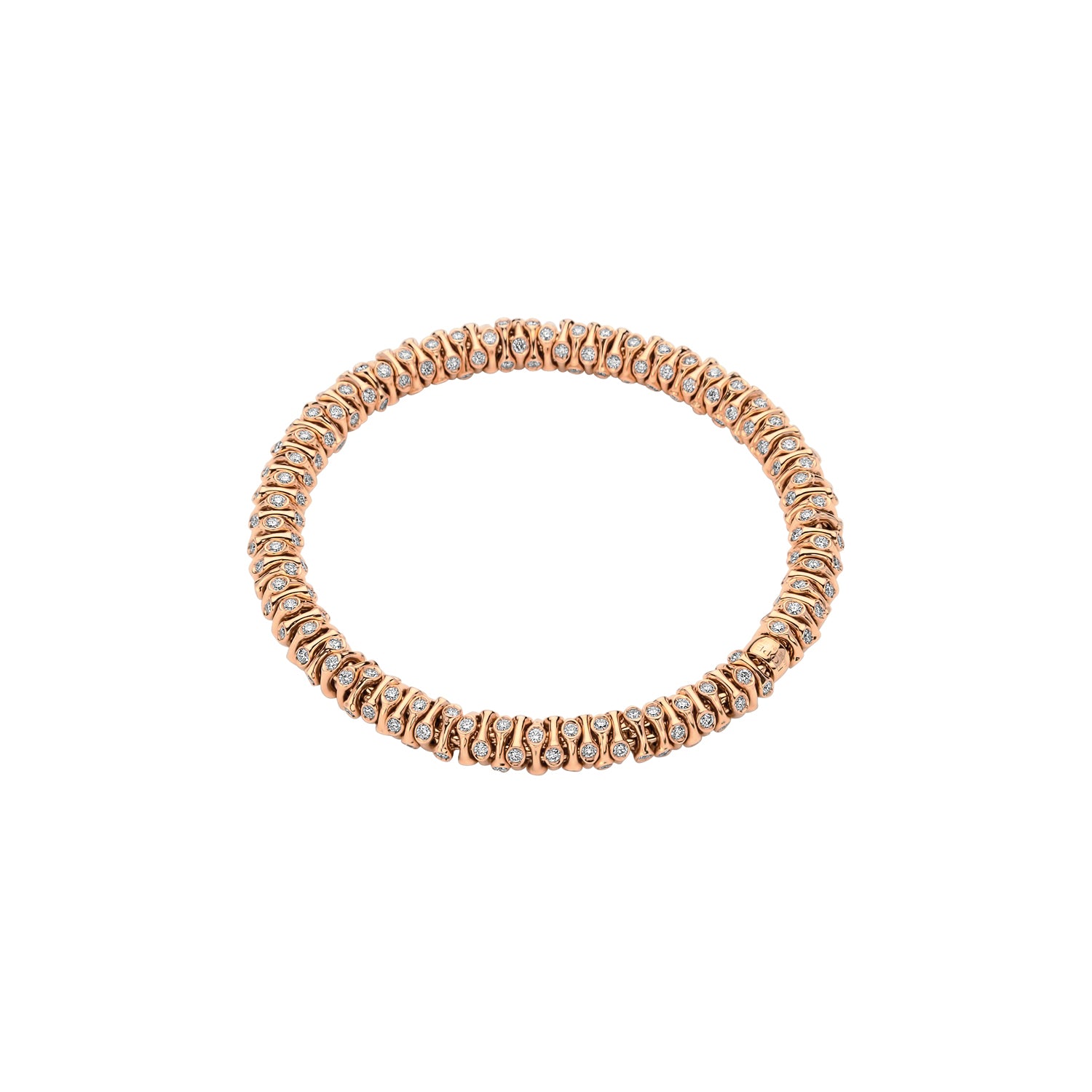 Each rondel is meticulously set with white diamonds, resulting in an impressive total weight of 3.96ct (S), 4.21ct (M), or 4.46ct (L). The balanced arrangement of the rondels enhances the bracelet’s fluid, sculptural silhouette while delivering exceptional sparkle from every angle.