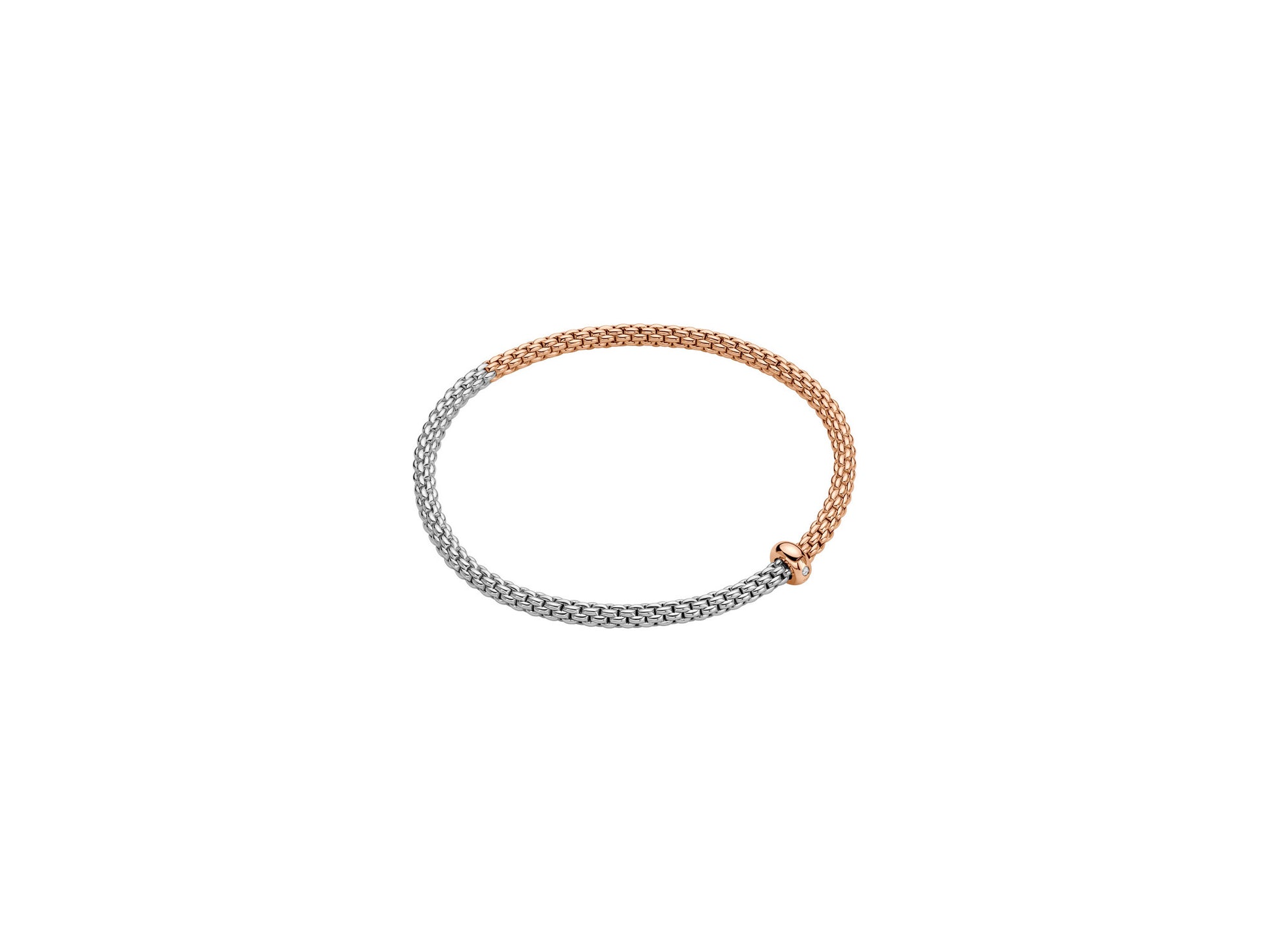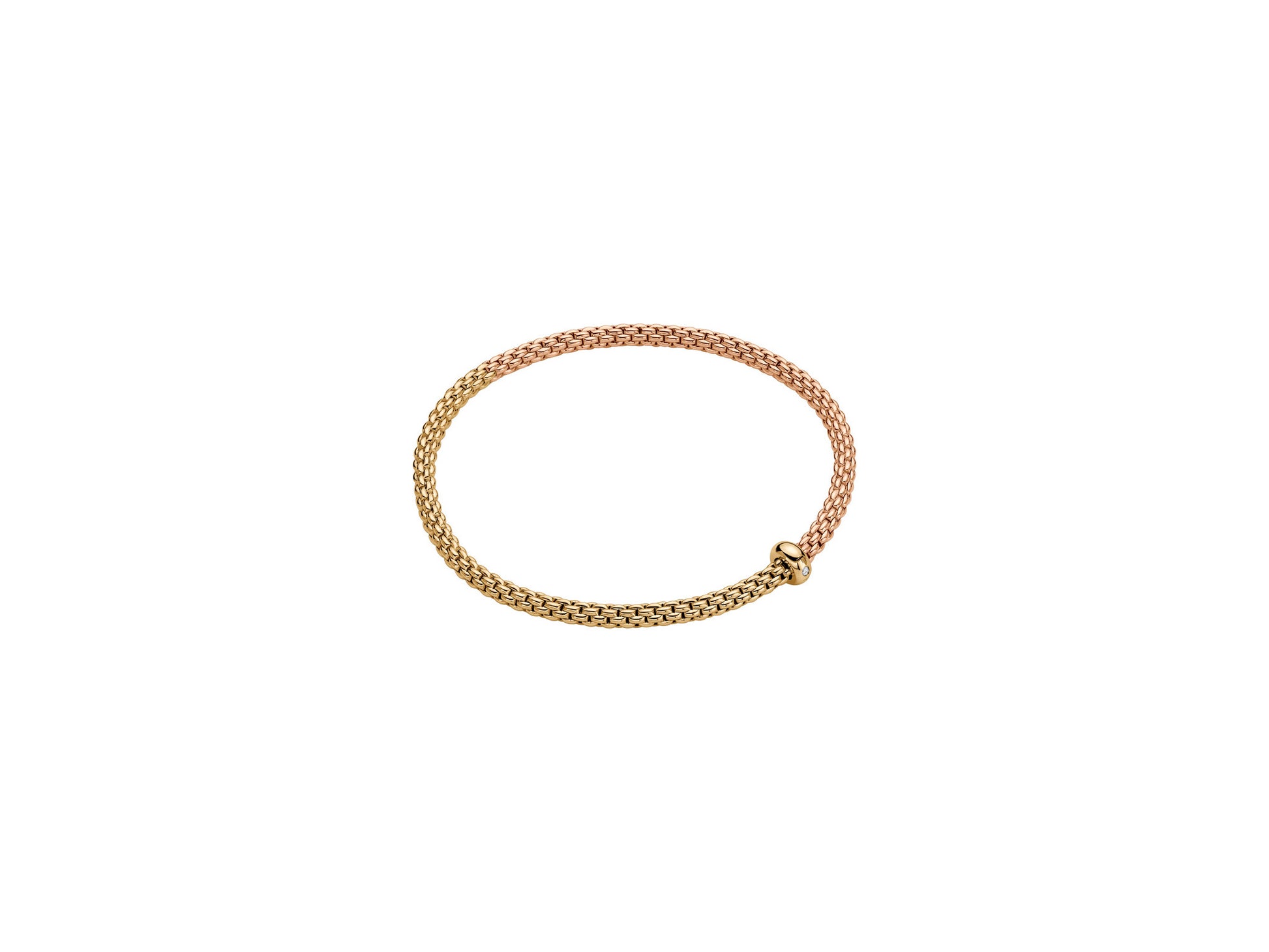 This elegant bracelet from FOPE’s Prima collection showcases the brand’s iconic flexible design with a subtle touch of sparkle. Crafted in a refined mixed-gold combination of yellow, white, and rose 18ct gold, the bracelet features the signature Prima link — smooth, lightweight, and effortlessly wearable.