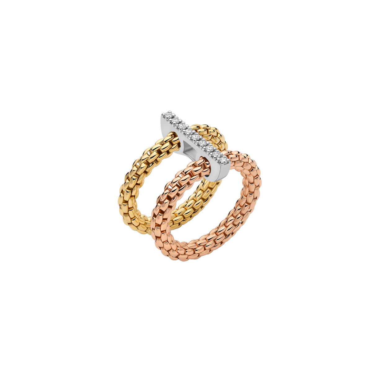Available in a range of mixed gold colour combinations, this ring offers a versatile and contemporary look that transitions seamlessly from day to evening. Worn alone, it makes a confident statement; paired with other FOPE rings, it adds depth and architectural interest to a stacked style.