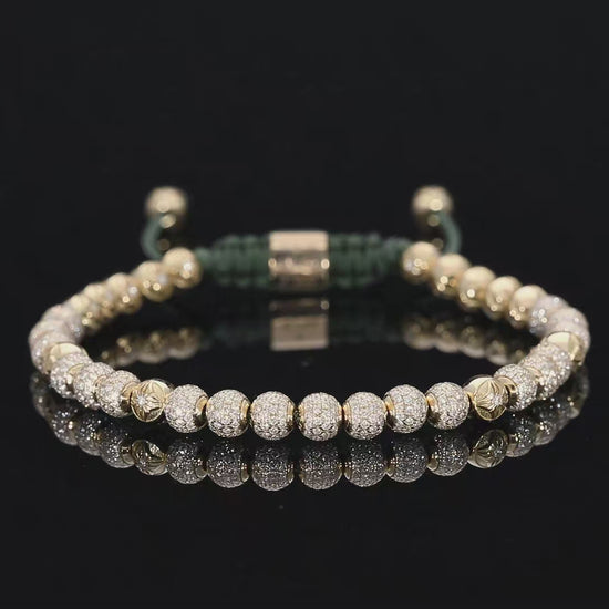 Slim, precise, and quietly radiant, the 4mm SHAMBALLA® Non-Braided Bead Bracelet distills the house aesthetic into a sleek, everyday silhouette. The refined 4mm profile sits close to the wrist with effortless ease, pairing the warmth of 18K yellow gold with the clean sparkle of G/VS diamonds. Framed by an olive-colored string, the bracelet introduces a subtle, organic tone—understated on its own, striking in a layered stack.