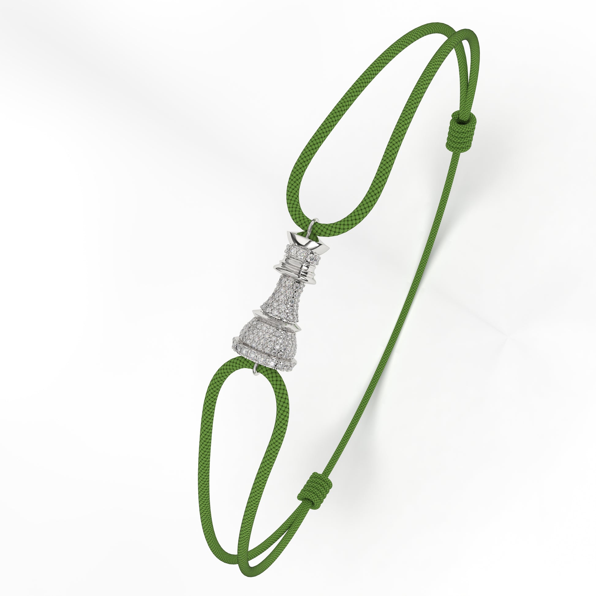 The Queen Power Cord Bracelet – White Gold with White Diamond Pavé