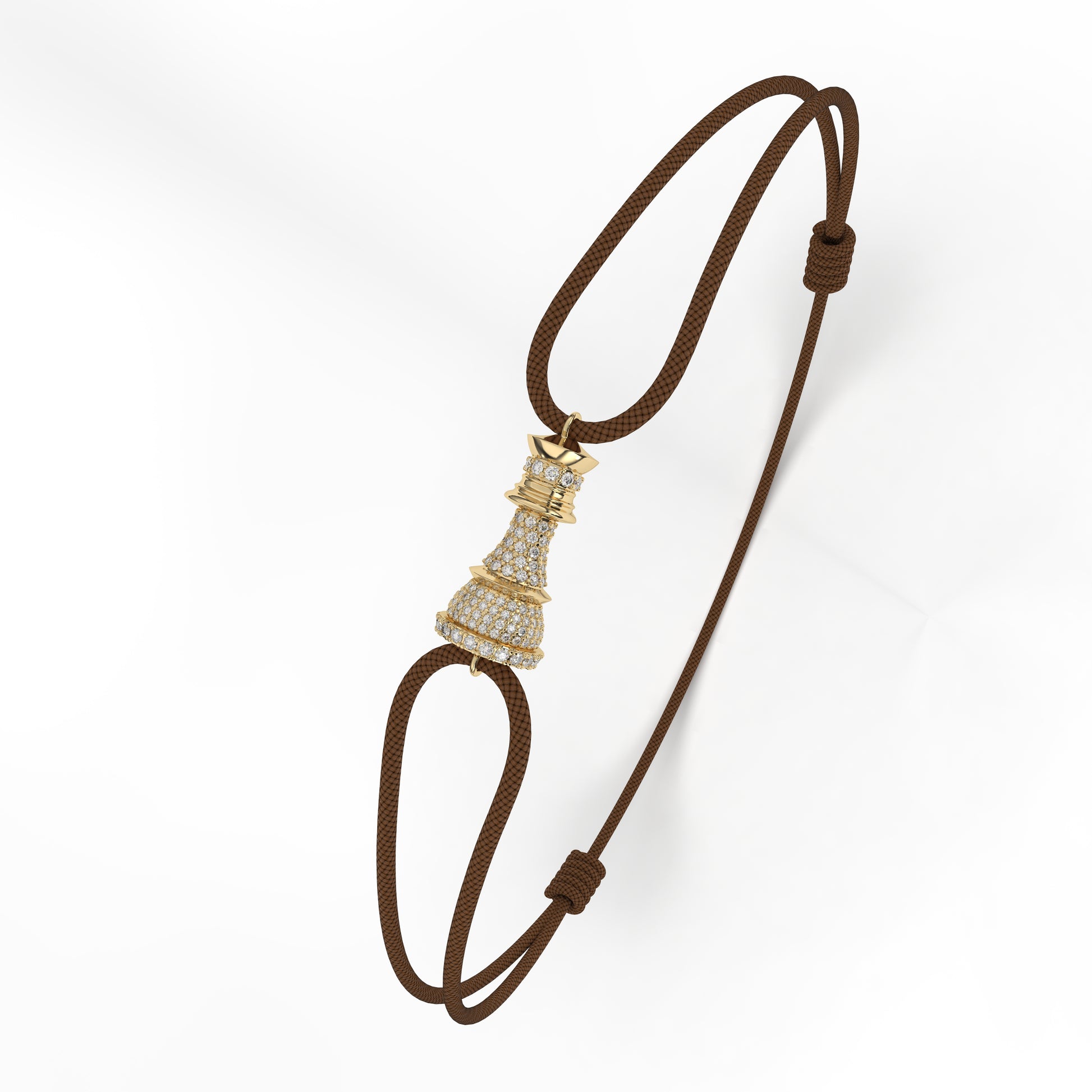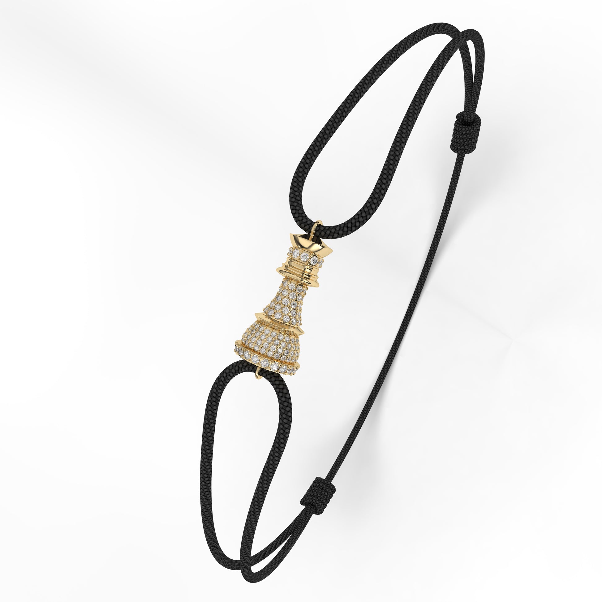 Introducing our Queen Collection – The Queen Power Pavé Chess Cord Bracelet. Symbolising independence, power, and elegance, this bracelet in 18ct yellow gold is a captivating representation of feminine strength. Adorned with exquisite white diamond pavé, the cord bracelet wraps delicately around your wrist, adding a touch of sophistication and grace. Experience the allure of the Queen Power Pavé and embrace your inner power with Ksenia Mirella Jewellery.